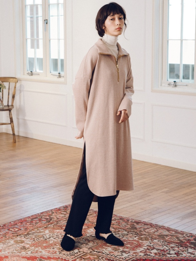 アシンメトリーにスリットが特徴のチュニックワンピースのレイヤードにおすすめなのがこちらのリブパンツ。 メロウステッチが施されたヘムが女性らしい着こなしに仕上げてくれます。 チュニックワンピのインナーにハイネックのトップスを選べばエッジの効いた着こなしが楽しめます。