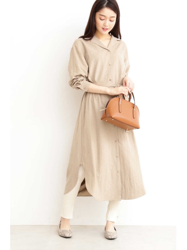 秋冬活躍してくれること間違いなしのアイテムが欲しいならコレに決まり! ホワイトカラーのリブパンツはベージュのシャツワンピースと合わせてキレイに。 ランダムコットンのリブ生地が季節感のある着こなしを演出してくれます。 ブラウンのバッグをアクセントにして、優しい印象のニュアンスカラーコーデはいかが?