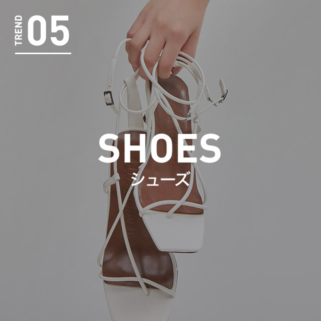 華奢なストラップのストリング(紐)サンダルが人気の兆しあり。ここ数年、レースアップやひも付きストラップが人気の流れもあり、今季はストリングサンダルが流行ると予想。人気ブランドの展示会でかなり見かけました。ポイントは紐が華奢なところです。アクセサリーは大ぶりの傾向がありますが今季の足元は繊細なムードが流行りそう。履きづらそうなイメージもありますが、紐がつながっているタイプがほとんどなので気軽に取り入れられそう。