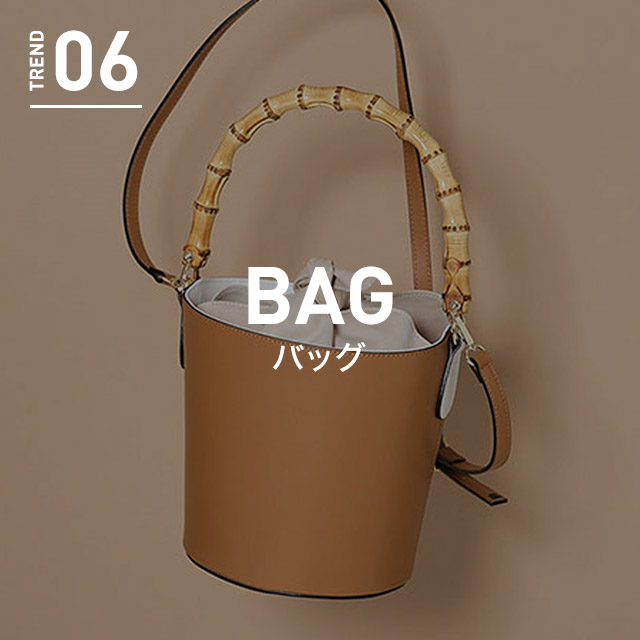 丸いフォルムが可愛いバケツバッグ。その名の通りバケツのような形で荷物をしっかり収納出来るのも嬉しいポイント。新鮮な表情のバケツバッグはスタイリングにトレンド感をプラスしてくれること間違いなし!ショルダー付きのタイプもあるけど、ワンハンドルでラフに持つのがより今季らしくなります。